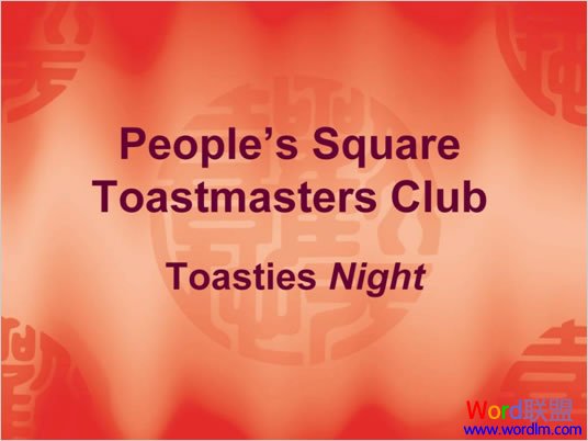 我们来看一个案例。我所在的Toastmasters俱乐部(全球性质,非营利的,提高公众演讲,沟通和领导力的组织),每年都会举办会员的颁奖晚会。也会用到PPT,这是几年前的一份。