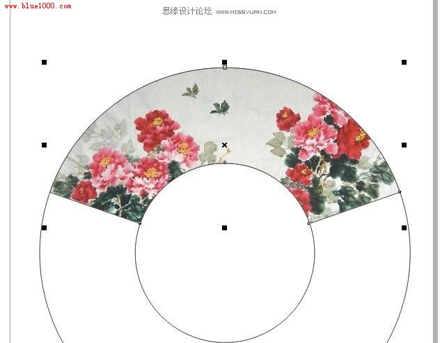 2.扇面上的画,折扇似呼是古代文人骚客的必备物件,自然上面都是书画佳作,所以我们最好准备一张国画,或者书法作品。置于扇面中,如图: