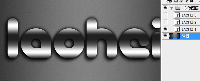 1、首先我们新建一个文档,尺寸:800x290px,背景填充灰色,可加上一些杂色。打上想要的文字,复制两层。然后分别讲解下这3个字体图层的图层样式: