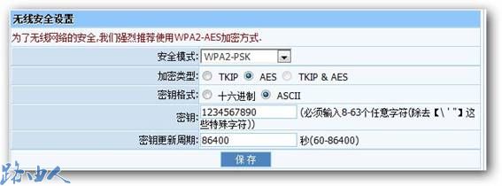 四、点击无线安全管理,安全模式选择上端的加密方式,输入正确的密码,点击保存。