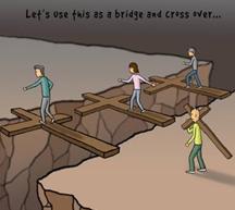 后面的人都慢慢地赶上来了,他们用自己背负的十字架搭在沟上,做成桥,从容不迫地跨越了沟壑。